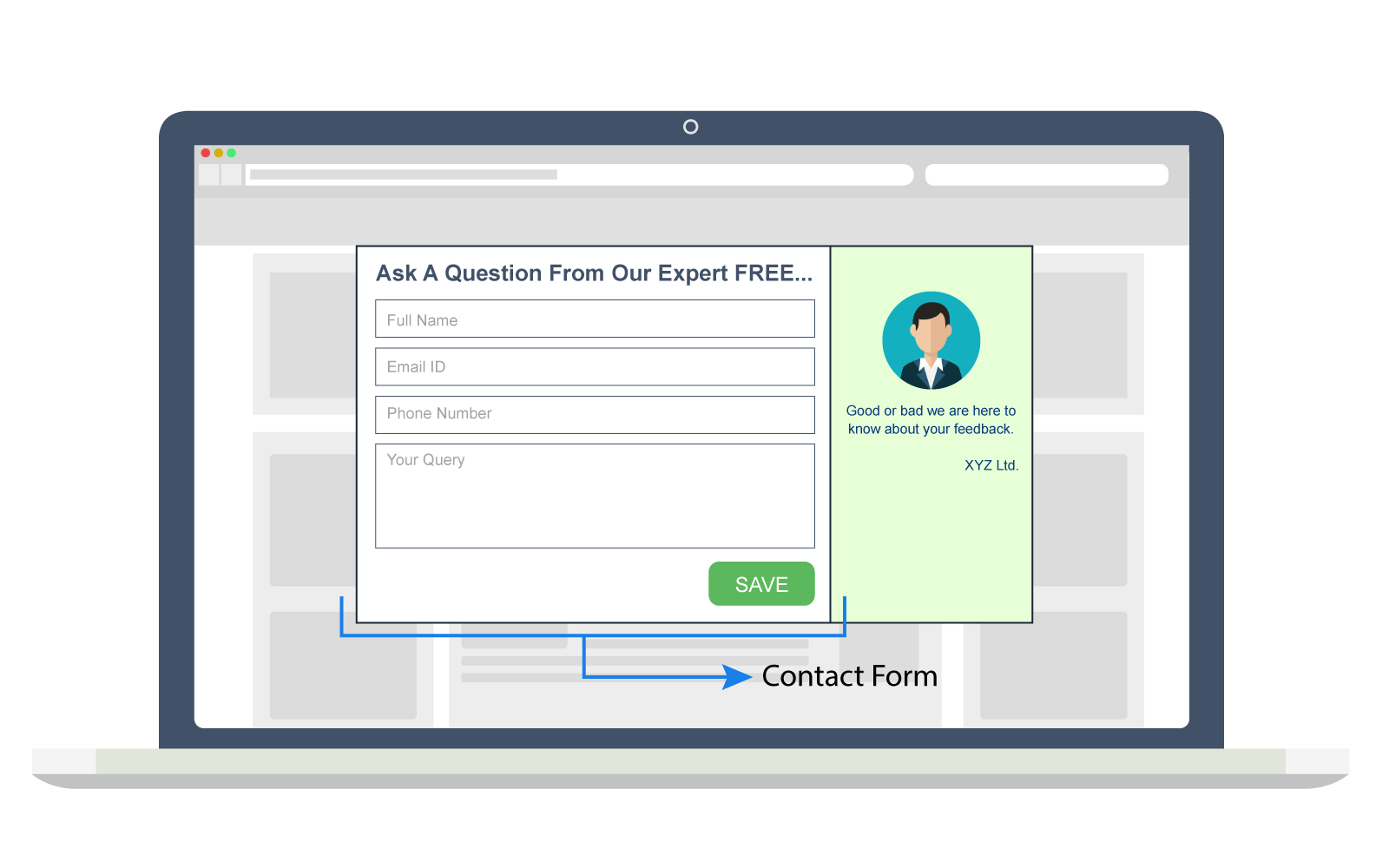 A contact form, which is specifically designed to increase the lead flow from your website. Minimalistic data & to the point targeting to lure visitors to provide their contact details.